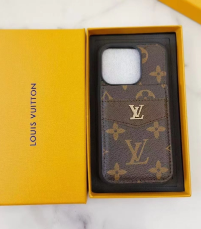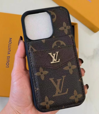 LouisV-Style Monogram Leather Card Holder Phone Case for iPhone