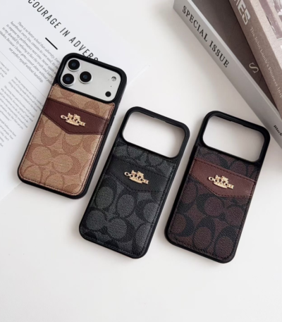 COACH Signature Canvas iPhone Case with Card Holder ā Series 12 to 17 Luxury Designer Protective Cover
