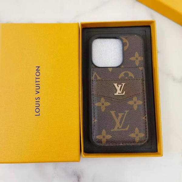 LouisV Style Leather Card Holder Phone Case for iPhone 11ā17 | Slim Luxury Wallet Cover